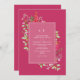 Delicate Neon Wildflower Hot Pink Wedding Initials Invitation