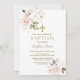 Delicate Pink Blush Gold Flowers Cross Baptism Invitation