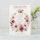 Delicate Pink Floral Wreath Graduation Cap Invitation Card Design with Back 3-Photo Collage.