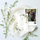 Delicate Romantic Flowers and Branches Frame Wedding Save the Date Cards with Back Photo and QR Code.