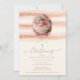Delicate Romantic Rose Gold Glitter Style Christening Invitation Card with Oval Photo.