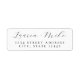 Custom-designed wedding return address labels with couple names featuring modern elegant black and white design. Perfect for wedding invitation envelopes, save the dates, and more.