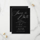 Simple and elegant save the dates featuring "Save the Date" text in a vintage-inspired script. Contrasting white font on a black background.