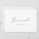This delicate silver calligraphy reserved sign is perfect for a modern wedding. The card is double sided (prints on both sides). The romantic minimalist design features lovely and elegant silver gray typography on a white background with a clean and simple look. Use these cards to reserve chairs or tables at your wedding ceremony, reception or any event.