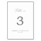 This delicate silver calligraphy table number is perfect for a modern wedding. The romantic minimalist design features lovely and elegant silver gray typography on a white background with a clean and simple look. The card prints on the front and back (double-sided). Items are printed exactly as they appear on your screen when you add to cart, so personalize and add each table number that you need to your cart individually.