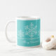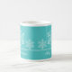 Clean and modern Delicate Snowflakes Christmas mug in turquoise. Give your friends and family a dose of holiday cheer with this fun mug. Great and affordable stocking stuffer idea! Customize the text to give this design more of a personal touch!