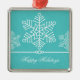 Clean and modern Delicate Snowflakes Square Christmas Ornament in turquoise. Give your friends and family a dose of holiday cheer with this fun ornament. Great stocking stuffer idea! Customize the text on this design to give it a personal touch!