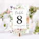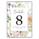 Elegant floral wedding table numbers featuring watercolor flowers and foliage in shades of light peach, ivory, blush pink, purple, yellow, and green. The stunning floral table numbers are perfect for spring and summer garden weddings. To order the table cards: add your name, wedding date, and table number. Add each number to your cart individually and check out when you're finished. Do not order by quantity or you will have multiple cards with the same number. Designed to coordinate with our Delicate Spring Floral wedding collection.
