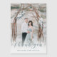 This elegant wedding thank you magnetic card features your own personal wedding photo with romantic blue script calligraphy and a matching abstract dotted back.