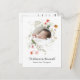 This sweet birth announcement post card design has a delicate watercolor floral frame surrounding your baby's photo. The photo template has been masked in a round shape in the center of the lovely flowers giving this birth announcement a uniquely special look. Personalize with your baby's photo. When you load the photo, it will automatically appear in the round shape template. The text template includes the baby's name on the front of the card with birth stats and parent's names on the back of the card. These cards make a wonderful keepsake for family and friends.