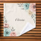 These personalized wash cloth feature delicate sketchy flowers with soft watercolor textures in blush pink, mint green, and pale yellow.