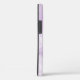 Design features delicate white flowers with ribbon petals and a glitter center, on a purple background lightly sprinkled with a touch of fine silver dust. Personalize with your initial.