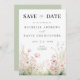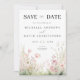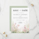 This design features a delicate watercolor illustration of wildflowers in shades of green and pink.