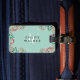 Luggage tag in pale green with hand-drawn, tiny wildflowers surrounding your name and initial. Add your address to the back.