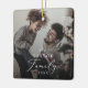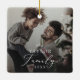 This delicate yearly family dark overlay photo keepsake ceramic ornament is the perfect modern Christmas tree decoration. The romantic minimalist design features lovely and elegant black typography with a clean and simple look. Personalize your double-sided keepsake ornament with a photo, your family name and the year.