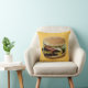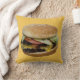 Photograph of a delicious cheeseburger on customizable yellow background. Back of pillow matching customizable yellow.