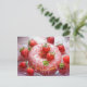 Delicious donut with sugar glaze, top view. Decorated with strawberries and sugar pearls.