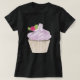 T-shirt with an illustration of a delicious cupcake with pink swirls and a berry with leaves nestled in the frosting.