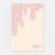 Delicious sticky notepad with a cake inspired design with delicious strawberry frosting dripping down the vanilla yellow page and strewn with lots of sprinkles in different shapes and your name in the corner in a pretty script. Frosting notepad with sprinkles in pink personlized with your name in a pink script. The perfect sticky notepad for a girl who loves delicious cakes and treats, frosting and sprinkles and icing and all that yummy stuff!