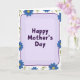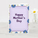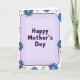 Designed with a gentle lavender rectangular frame that has softly rounded corners and a slight gradient, this card sets a calm, caring tone right away ❤️. Centered inside the frame, the message “Happy Mother’s Day” appears in rounded, dark purple lettering that feels friendly and close. A thin deep-violet line runs along the frame’s edge, giving the center area a neat outline against the white background. Around the border, stylized blue flowers with sunny yellow dotted centers cluster like a garden gathered around the words, suggesting a warm, welcoming embrace. Simple green leaves weave between the blossoms, adding a fresh, natural balance that keeps the layout light. Faint grey-white floral shapes sit quietly in the background, like soft echoes of petals that add depth without pulling focus. The mix of soft purples, blues, yellows, and greens creates a tender, companionable mood, like a gentle smile shared between family members 🌼. The flowers are scattered mostly around the edges, leaving the center open so the dark purple text stays easy to read.