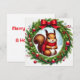 Delightful Squirrel in Christmas Wreath Holiday Card