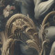 Baroque sin in bloom. Deliver Us from Decadence entwines muscular grotesquery with blooming excess—crimson roses, ivory dahlias, and gluttonous scrollwork spilling across a blackened void. The figure crouches in judgment, but whether savior or sinner, who can say?