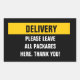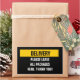 Notice to delivery people to please leave packages here at your desired location, along with a thank you. Attention getting yellow and white on black design with fully customizable text to alert your delivery people.