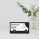 A simple drawing of a delivery van is on the front of the card. Your business name, company slogan, name, title, and phone number are printed on the side panel of the commercial van as if it was painted there. The van is white with black and grey lettering. The van is drawn in a minimalist, almost cartoon style. Behind the van is a solid black background that goes with the black lettering. The back has additional contact information. Good for the following types of businesses: trucking, delivery, shipping, logistics, moving, hauling and any other business that uses a big van. The card can also be used for mobile services such as cleaning, janitorial, food trucks, handyman, plumbers, electricians, carpenters, painters, home installations, home health services, HVAC, etc.