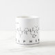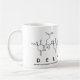 Delphine spelled out in amino acids as D E L P H I N E (Aspartic acid Glutamic acid Leucine Proline Histidine Isoleucine Asparagine Glutamic acid) on a mug for the scientist in you.