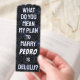 “What do you mean my plan to marry [Pedro] is delulu?” Funny bookmark for members of the non-exclusive Delusion Goals club; by Artist and card-carrying member, contemporary artist, Kim Niles.