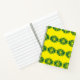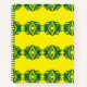 A stylish hardcover notebook with a vibrant yellow cover featuring a bold green geometric pattern. Includes graph paper inside and a black spiral binding. Ideal for notes, sketches, or planning.