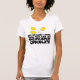 The material is a great quality that is hard to find with most tee shirts. Fabric was not see-through or thin at all, but was also very soft and comfortable. The shirt description states that it runs a little small, so I sized up one size for a perfect fit! I would definitely buy this type of tee shirt again because I love the fit and high quality fabric that I cannot find anywhere else. The printing was perfect and just as pictured. Loved the cute quote and really enjoy the tee in both the quality and design. I love quirky typography designs and funny quotes and I am extremely pleased with the overall quality and value I get at Zazzle!