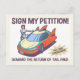 Fake retro car ad: "Sign my petition! Demand the return of tail fins! Call your congressman!" Text with picture of a current style car with tail fins, and futuristic model. T-shirts, novelty gift swag.