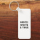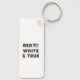 This keychain features a bold and patriotic design with the phrase “RED WHITE & TRUE” in capitalized letters. The design includes an image of the United States flag in grayscale, positioned to the right of the text. Made from high-quality, durable material, this keychain is perfect for showcasing your national pride. Its compact size makes it a stylish and practical accessory for your keys, bags, or as a thoughtful gift.