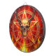 This captivating piece of artwork features a menacing evil demon skull, complete with intricate horns. The skull is prominently placed in front of a fiery pentagram, with flames rising dramatically in the background.