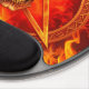 The plastic backing is nice and sturdy. The grippy pads underneath keep the mouse pad where I put it on my table. The pad the mouse sits on is cut well to fit the backing. The wrist pad is perfectly soft, supportive, and thick. I'm left-handed, and this mouse pad works just as well for me as it does for my right-handed friends. I'm the designer of HippieClecticHope products. I'm blown away by how well my intricate fractals turn out on the tangible items in the Zazzle Marketplace. This particular mouse pad ***appears*** like a 3D object... A mathematically-engineered rainbow black opal, inlaid under transparent fabric...