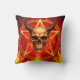 This captivating piece of artwork features a menacing evil demon skull, complete with intricate horns. The skull is prominently placed in front of a fiery pentagram, with flames rising dramatically in the background.