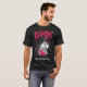 My 11 yo wore adult XL (5’7” 165#). The 8yo is small framed. She wore adult small and tied it in the back. Grandma wore adult large with long sleeve shirt underneath. Tall girl adult medium. Dark haired male adult large. Good quality dark Heather gray, Gildan brand shirt. -it was next up from basic choice and cost about $20 per shirt. Not too thick or thin. Washed and dried well, no major shrinkage. Not see-through. Can wear a bra under it fine. Screen print is just as shown and well done, front and back.
