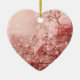 This is a sure keepsake. The pretty pink flowers are on a heart-shaped ceramic ornament.