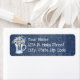These return address labels have a blue denim background with a vase of Daisys, to the left. The text box can be personalized with your information.