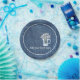 This design features a blue denim background, with a vase of Daisys in the lower right corner. There's an area, on the bottom where you can add your own text, to customize the design for any party or occasion.