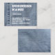 The background of this business card is a photograph of a pair of faded blue jeans.