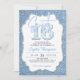 A simple, modern, elegant and chic, denim and diamonds sweet 16 birthday party invitation template featuring a light denim background and modern calligraphy script, as well as a diamonds trimmed, elegant frame. On the back, a photo template that you can replace with a picture of your fashionable teen. A chic "denim and diamonds" design for a milestone birthday.