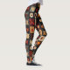 This leggings features a denim-textured folk art quilt pattern, blending autumn and country-style charm. The patchwork is composed of square blocks stitched together, each showcasing a distinct motif such as pumpkins, fall leaves (oak and maple), birds, sunflowers, hearts, and stars, all in a rustic primitive Americana style. The warm palette of oranges, reds, and browns contrasts beautifully with dark blue and black backgrounds, adding depth and a cozy, handmade feel. Perfect for farmhouse décor, autumn crafts, Thanksgiving projects, rustic textiles, and country-inspired DIY designs.