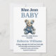 Denim Patchwork Bear Boy Blue Jean Baby Shower Invitation