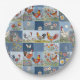 Denim Patchwork With Chickens And Wildflowers Paper Plates