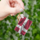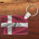 Keychain with the flag of Denmark in wavy fabric style design. This design features the flag colors and design with a beautiful waving material textured effect. This flag design is a great way to show you are proud to be from Denmark.