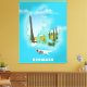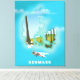 Denmark map illustrated travel poster cartoon print.