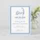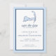 Wedding Save the Date for your Cape Cod wedding. Map of Cape Cod with a pink heart over Dennis Port, Massachusetts. COLORS in Hydrangea Blue, Navy, White with a pink heart. The heart if moveable if you needed a different location. If you wanted any changes to the design please email paula@labellarue.com BEFORE PLACING AN ORDER so a new design can be created for you to work with.
