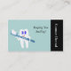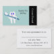 A illustration of a tooth holding a toothbrush. Front of card is for company name and back can be used for an appointment reminder. Great modern and professional looking business card for a dentist or dental hygienist.